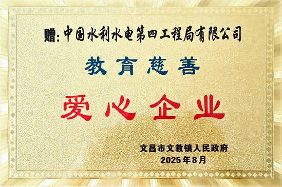 海南水庫水閘加固項目榮獲文昌市文教鎮“教育慈善愛心企業”稱號 |