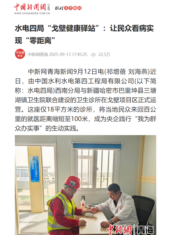 中國新聞網:水電四局“戈壁健康驛站”,讓民眾看病實現“零距離” |